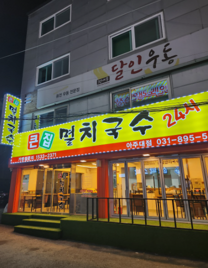 오늘은 수원 우만동에 위치한 '큰집멸치국수'를 소개해드리려고 합니다. 이곳은 아주대학교 정문 근처에 위치해 있어 학생들과 인근 주민들에게 사랑받는 곳인데요, 특히 24시간 영업으로 언제든 든든한 한 끼를 즐길 수 있는 곳입니다.
