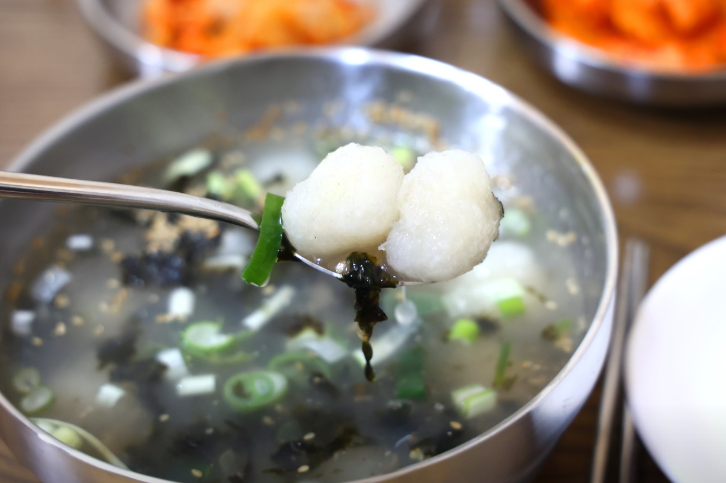 이곳의 감자옹심이는 방부제를 전혀 사용하지 않고 100% 감자로만 만들어져 쫄깃하고도 부드러운 식감을 자랑합니다. 손으로 직접 빚은 옹심이는 크기가 일정하지 않아 더욱 정겹고, 감자 특유의 풍미가 그대로 살아 있습니다. 국물은 진하고 깔끔한 멸치 육수 베이스로 만들어져 감자옹심이와 완벽한 조화를 이룹