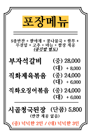 | 주차 | 가게 주차장은 협소하므로 맞은편 유료주차장 또는 동부지원청 주차장 이용을 권장드립니다. |